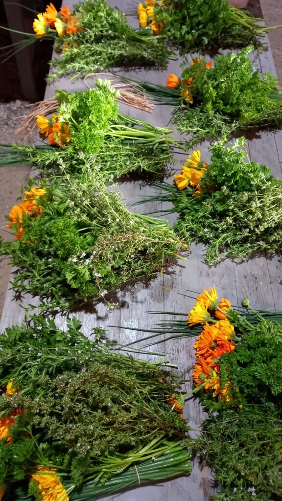 Bylinkové svazky provází po celou sezónu každou bedýnku, kterou k vám pošleme. Snažíme se dělat z nich krásné voňavé kytičky, které ozdobí váš stůl a ochutí vaše jídlo.