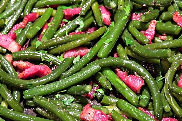 Česnekové výhonky nakrájíme na 4-5 cm velké kousky, vložíme do cedníku a propláchneme je pod tekoucí vodou Opláchnuté výhonky necháme 1-2 minuty blanšírovat ve vroucí vodě (prostě je spaříme :)) Anglickou slaninu či tofu nakrájíme na malé kostičky. Na pánvi rozpustíme máslo, přidáme kostičky anglické slaniny či tofu a okapané česnekové výhonky, za stálého míchání zprudka 5 minut restujeme Na závěr osolíme, opepříme, přidáme nasekanou petrželku a promícháme Podáváme jako přílohu.