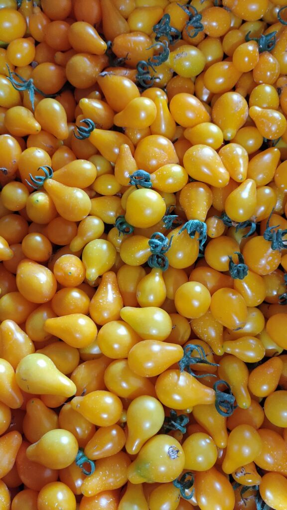Jde o drobné žluté keříčkové rajče s nezaměnitelným hruštičkovitým tvarem. Sklízí se většinou po jednotlivých plodech a řadí se mezi svačinkové druhy. Je velmi oblíbené pro svěží chuť a množství vitamínů. Tuhle odrůdu milují i děti pro netradiční tvar, barvu a velikost akorát do pusy. Rajčátka se dobře krájí a jsou ideální do salátů a ke zdobení pokrmů.