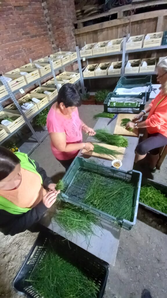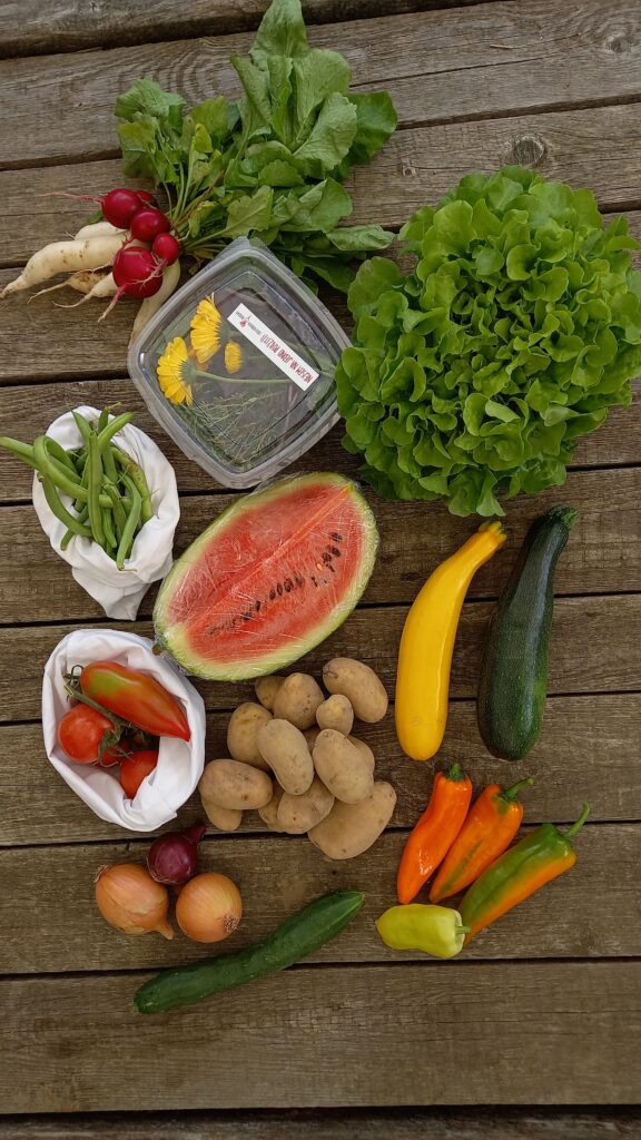 Máme například nové věšáky a skříňky v šatnách, pergolu, kde se můžeme schovat před sluníčkem a deštěm. S novým pluhem uděláme hrůbky na poli za pár minut a na nové váze pohodlně zvážíme celé přepravky. Máme samozřejmě i spoustu drobností – nové pracovní oblečení a rukavice, plečky, nůžky nebo nože na sklizeň zeleniny.